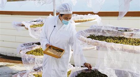 百年古茶樹在茶園中盛放 茶葉在茶人手中飛舞